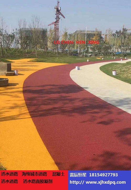 透水地坪系列、無砂透水地坪系列)材料是用特定的彩色添加劑、增強劑、固化劑、水泥等材料配置鋪砌而成。具有高透水率、高強度、環保性、裝飾性、緩解城市熱島效應等優點,是完全的綠色新產品。